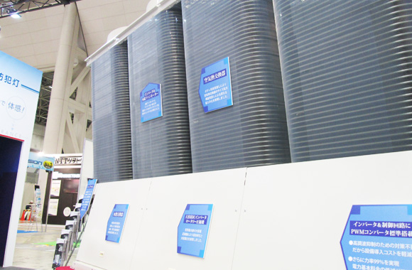 ブース内では省エネマイスターによるセミナーやLED防犯灯の比較体感デモンストレーションやパネル展示などを展開しました。